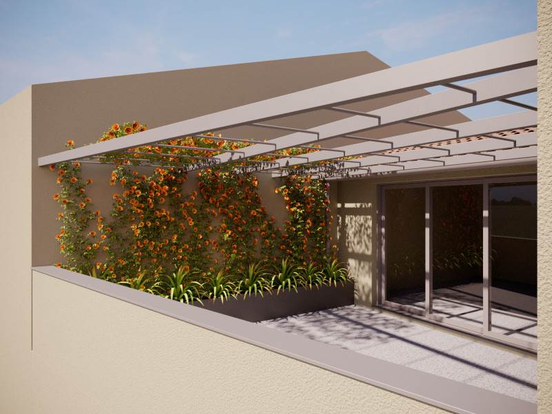 Il s'agit de l'aménagement interne et externe d'un appartement en centre-ville et de sa terrasse. La difficulté a été de composer l'espace externe et d'obtenir l'accord de l'architecte des bâtiments de France car il s'agit là d'un secteur sauvegardé.