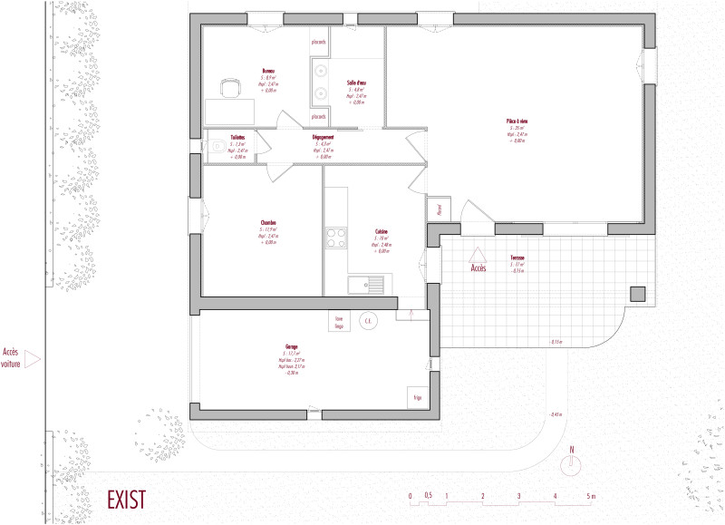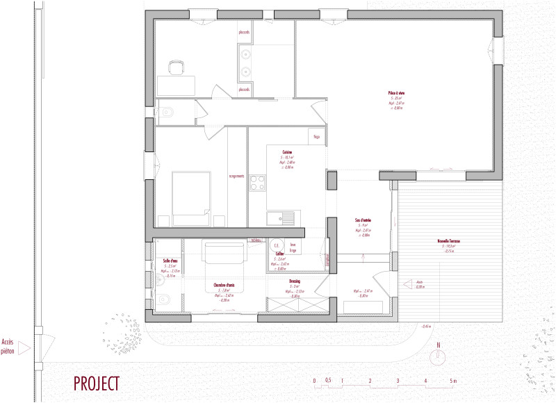 A young couple wish to create a bedroom for guests using their garage. For this I decided to create a new entrance to be able to connect the new bedroom for guests to the rest of the house.