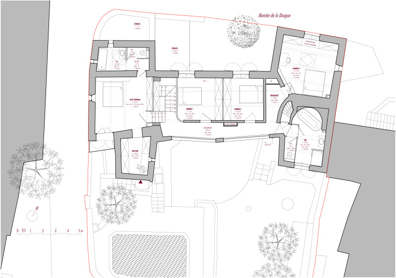 Il s'agit de l'aménagement interne complet d'une maison de village. Il a fallu repenser la distribution interne en vue d'accueillir les nouveaux occupants.